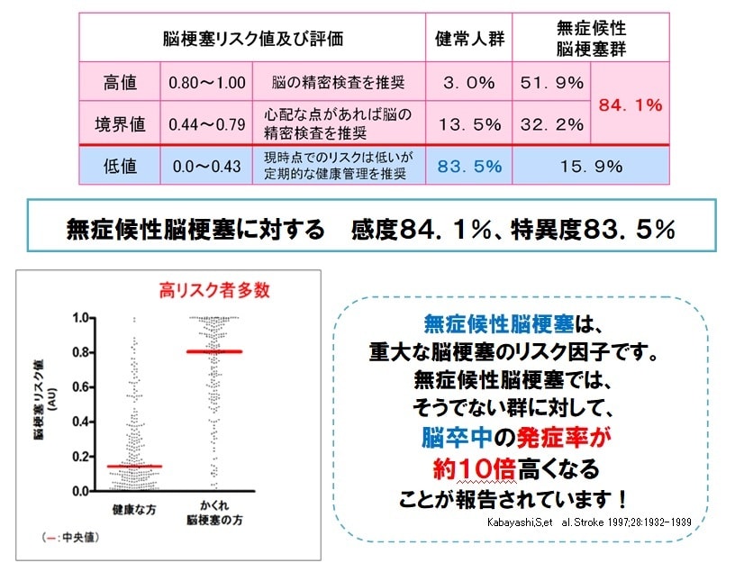 無症候性脳梗塞を早期発見し、生活改善(リスク因子の治療等)により、脳梗塞を未病のうちに対処していくことが重要です。